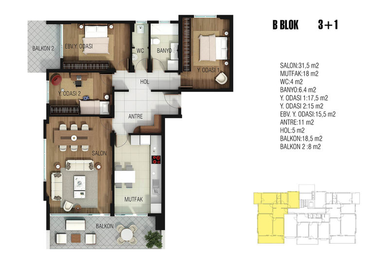 3D Kat Planı ve Kuş Bakışı Görseller
